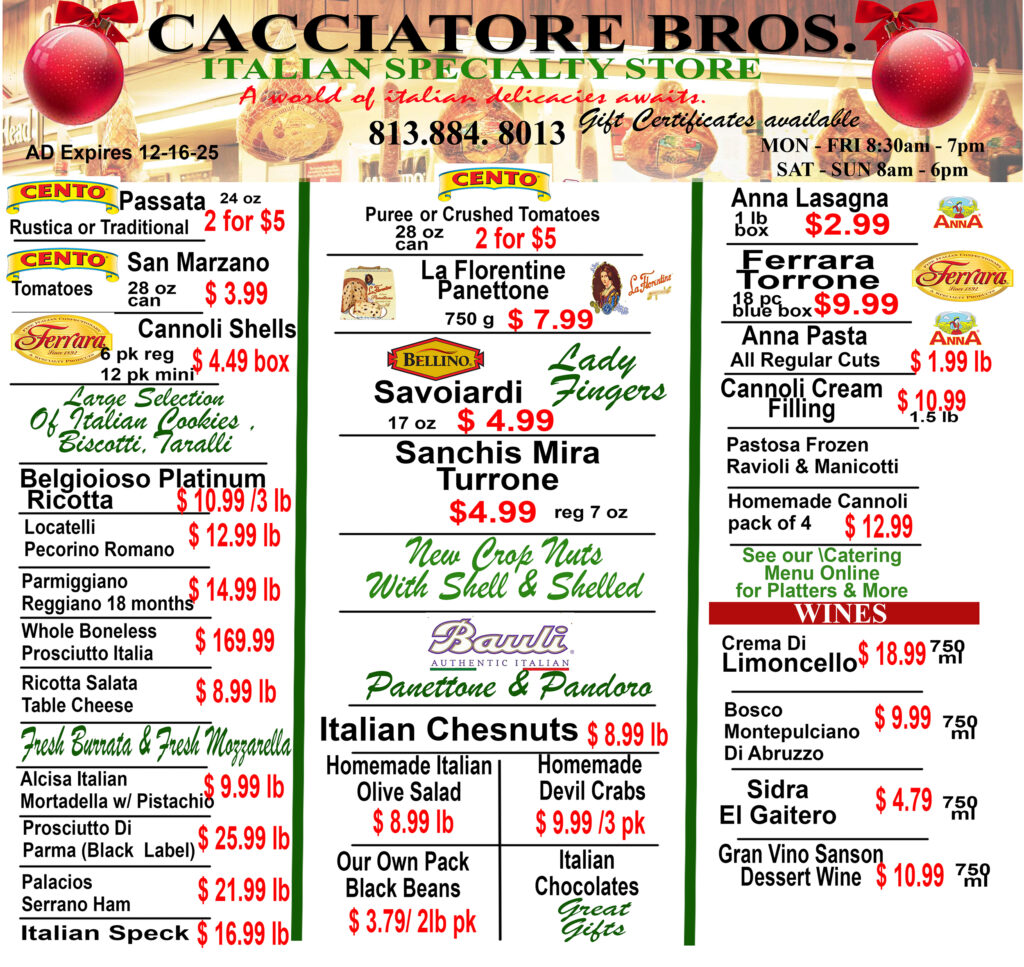 When we opened our doors to the Tampa community more than 115 years ago, our vision was simple: to line our shelves, deli cases and produce bins with the finest selection of locally sourced fruits and vegetables, authentic Italian specialties, meats, cheeses and more. Now in our third generation of ownership, our steady stream of longtime regular customers are a tribute to the fact that not much has changed. We are proud to be one of just a few remaining authentic Italian specialty markets in the Tampa Bay area. And because we believe in healthy, happy homes and well-fed families, we make every effort to keep our prices affordable, just like the old days.